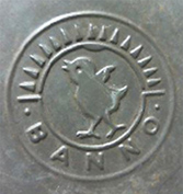 ![]() | フランス・パテーベビーの機材のトレードマークが鶏の親鳥(写真左)であるのに対し、伴野商会では、ひよこマークに"BANNO"(写真右)と刻印されたリールやフィルム缶を製造していました。 |